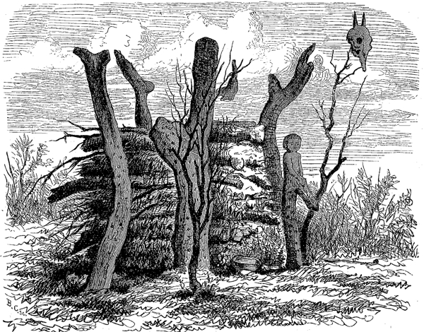 В заключение укажем на один из тех обычаев, который кажется чисто внешним и причудливым, и обширное распространение которого тем более удивляет нас. Сплетения из лёгких тростниковых палочек, перевязанные пёстрыми нитками в виде знамени или звезды, ставятся в Анконе и в Флоресе на могилах (см. раскраш. табл., «Американские древности», фиг. 7 и 8); у пимасов они имеют и религиозное значение. Без ближайшего определения их цели мы их находим на Ванкувере и в Читтагонге; в Египте они служат украшением для лошадей, а в Боливии ставятся на коньках крыш. [60]
