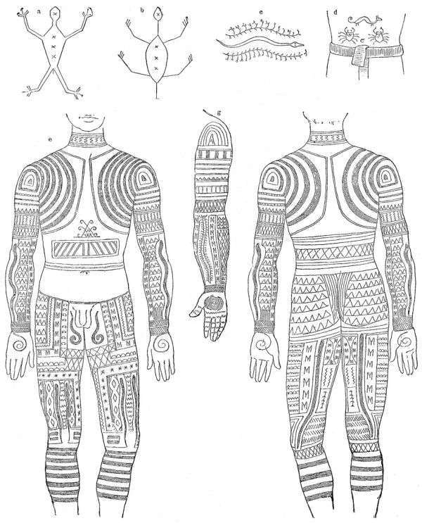 оставляемые им, неизгладимы. Татуировка у мужского пола происходит обыкновенно при наступлении возраста возмужалости, а у девушек, когда они уже считаются невестами.
