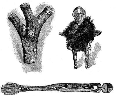 Странное почитание медведя, встречающееся также у индейцев, айнов и др., свойственно гиперборейцам Старого Света. От [690] тунгусов до финнов, наряду с небом и богиней преисподней, он считается почти божественным существом, в особенности властителем всех духов, божеством, наделённым мудростью, для которого медвежья шкура служит лишь оболочкою. Суеверия относительно животных и охоты чрезвычайно распространены. Женщины не должны наступать ни на какой след и не прикасаться ни к каким охотничьим снарядам. Голова мускусного быка должна быть отделена от шкуры, так же как и мясо соболя. До окончания охотничьего времени многие вообще не продают животных. Некоторые обычаи основываются на затемнённых преданиях о тотеме, что мы видим у различных племён самоедов, из которых хантаи едят чаек, а авамы пренебрегают ими, или когда, например, ассьяны отказываются от большого нырка, который, по их мнению, убивает людей, а другие всё-таки охотятся за ним. У Миддендорфа мы находим изображение палки из лиственницы с человеческим лицом и привешанным к ней жестяным оленем, пользование которой должно избавлять от болей самоеда, страдающего камнями, а также вырезанного из лиственницы северного оленя, который был найден на жертвенном месте у реки Таймыр. Естественные подобия людей и животных из камня и дерева пользуются почитанием и вымазываются кровью на том месте, где у них предполагается рот. Когда мы читаем, что орочон поклоняется различным божествам, которых он прикрепляет к дереву вблизи своей юрты рядом с заячьими капканами, мы должны иметь в виду подобный фетиш; медные вогнутые зеркала служат у тунгусов, чтобы улавливать духов и видеть будущее.