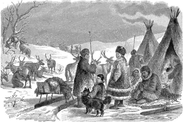 Мы упоминаем только мимоходом о незначительном разведении рогатого скота и лошадей у якутов и некоторых мелких тунгусских племён, которое может поддерживаться с значительным трудом даже на Средней Лене, куда, согласно преданию, эти народы доставили свои стада с истоков Лены на судах. Кроме собаки, только северный олень может быть назван полезным животным гиперборейцев Старого Света. Но его едва ли можно назвать домашним животным при той бродячей жизни, поддержанию которой он так способствует, и при том условии, что стада этих оленей ведут существование, мало отличающееся от дикой жизни. Будучи по природе одним из животных семейства жвачных, какие всего легче поддаются приручению, северный олень в одно и то же время по своему строению, способностям и инстинкту является одним из самых полезных человеку животных, и то обстоятельство, что он водится на Крайнем Севере, представляет светлую точку в естественных условиях этих стран. Уход за ним стоит не много труда. Его оставляют пастись на свободе, и доят самок дважды [683] в день. При этом лопари осторожно приближаются к отдельно пасущимся животным, накидывают им путы на голову и затягивают их вокруг морды, чтобы они не могли убежать. Самка оленя даёт не больше чашки молока, но оно очень густо, и перед питьём его разбавляют водой. Оно мало употребляется для изготовления масла, но лопари умеют делать из него сыр. Северные олени вполне пригодны для запряжки в сани (см. табл. «Стоянка самоедов»), а также и для верховой езды, для чего ими пользуются тунгусы и якуты. Перевозка на вьючном седле шалашей, уложенных в деревянные ящики, составляет главную задачу северных оленей. В богатой лесами Сибири тунгусы берут с собою в путь только покрышки шалашей (из берёзовой коры и из шкур). Там всегда можно найти жерди, оставленные на месте отдыха кем-либо, побывавшим здесь раньше, или вырубить их в лесу, находящемся обыкновенно невдалеке.