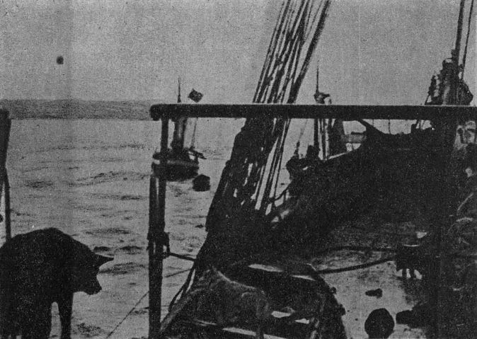 Узнали мы послѣ этого и нѣкоторыя подробности, которыя можно узнать отъ рыбаковъ, встрѣченныхъ въ морѣ у береговъ Мурмана. Пароходъ, который вчера убѣжалъ отъ насъ, былъ, дѣйствительно, Мурманскаго пароходства «Ломоносовъ». Онъ испугался нашихъ выстрѣловъ, принявъ въ темнотѣ бѣднаго «Фоку» за непріятельскій корабль. Время на Мурманѣ было тревожное... Рыбаки дали намъ свѣжей рыбы и... цѣлыхъ двѣ восьмушки махорки. Теперь мы всласть покурили, такъ какъ на «Фокѣ» табакъ тоже вышелъ и всѣ давно уже страдали отъ неимѣнія его. [193]